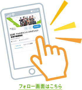「(J-46)マルチポイント×コネクション~稜風学園購買部~」 ブースのスタッフに、お手持ちの端末でフォロー画面をご提示ください。